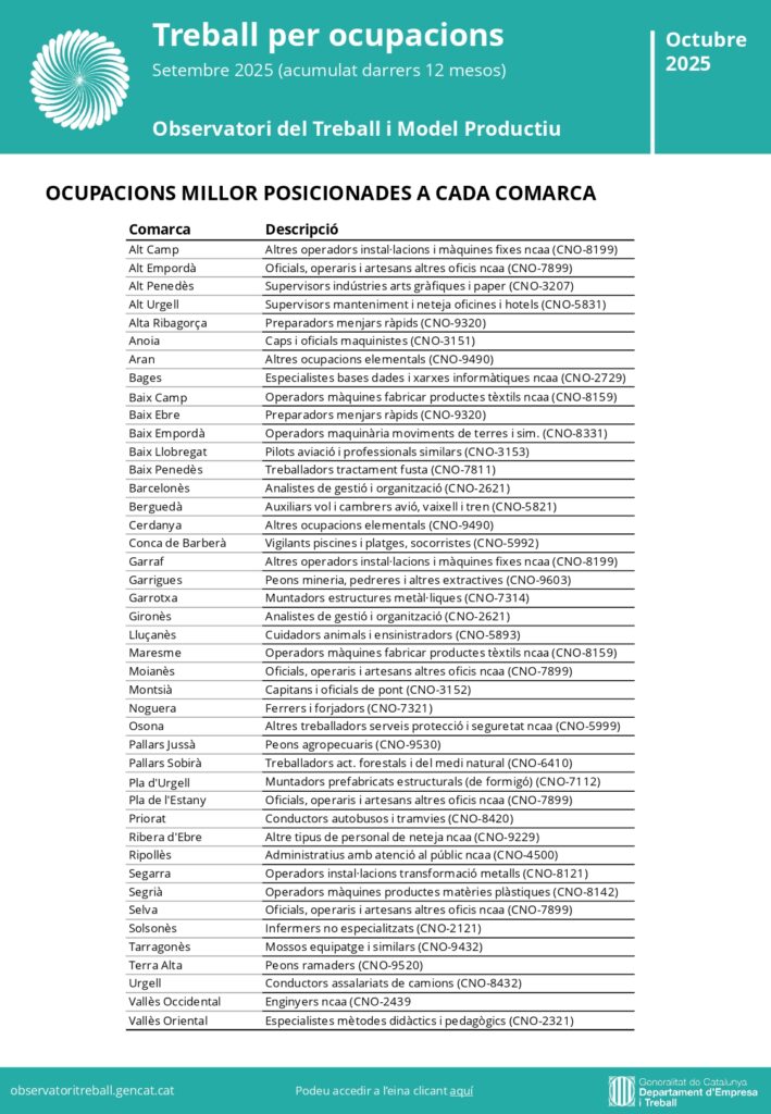 Treball per ocupacions || Setembre 2025
